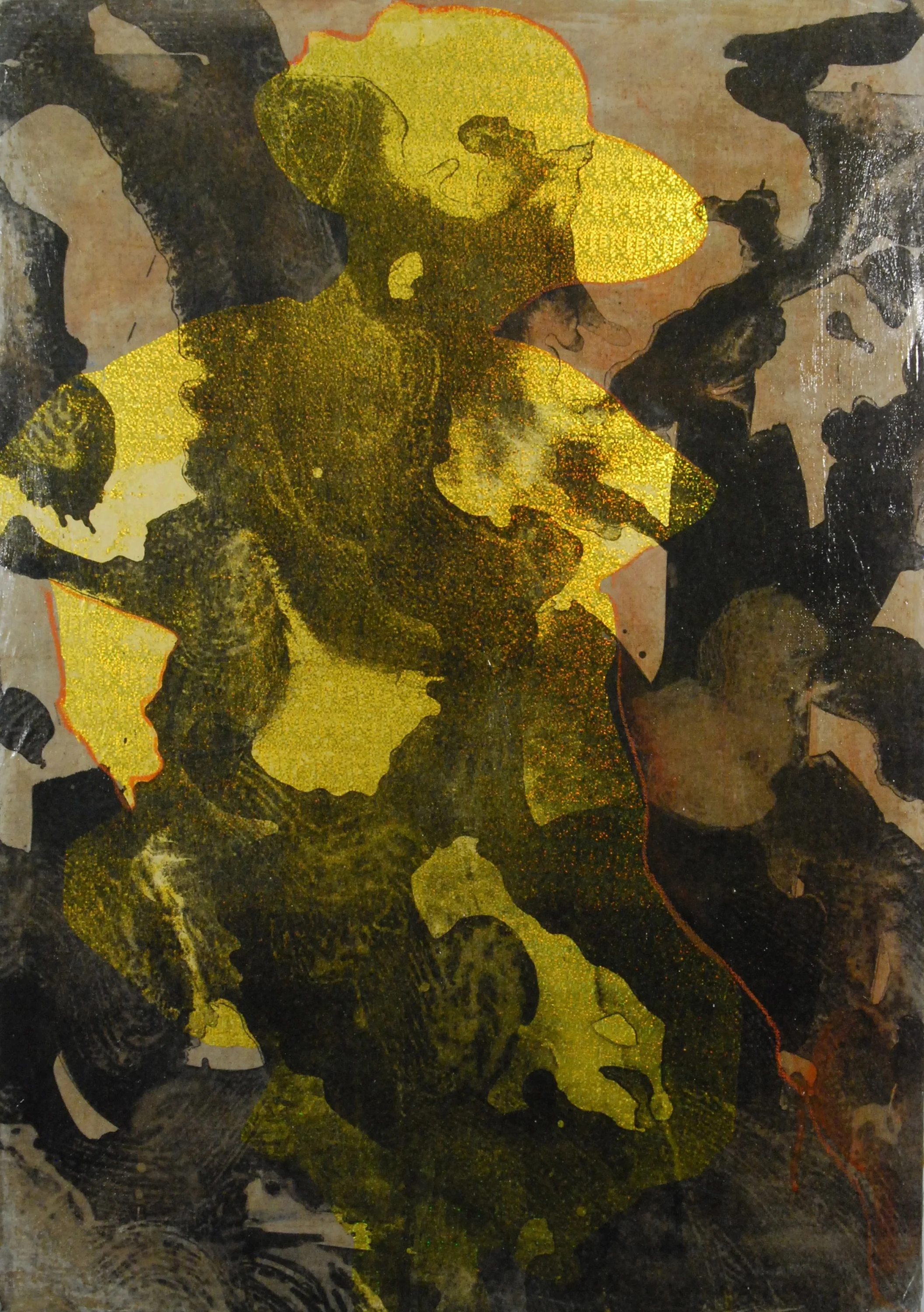 Gold,  Stone lithograph and paper collage on linen, 34x24 inches, 2014